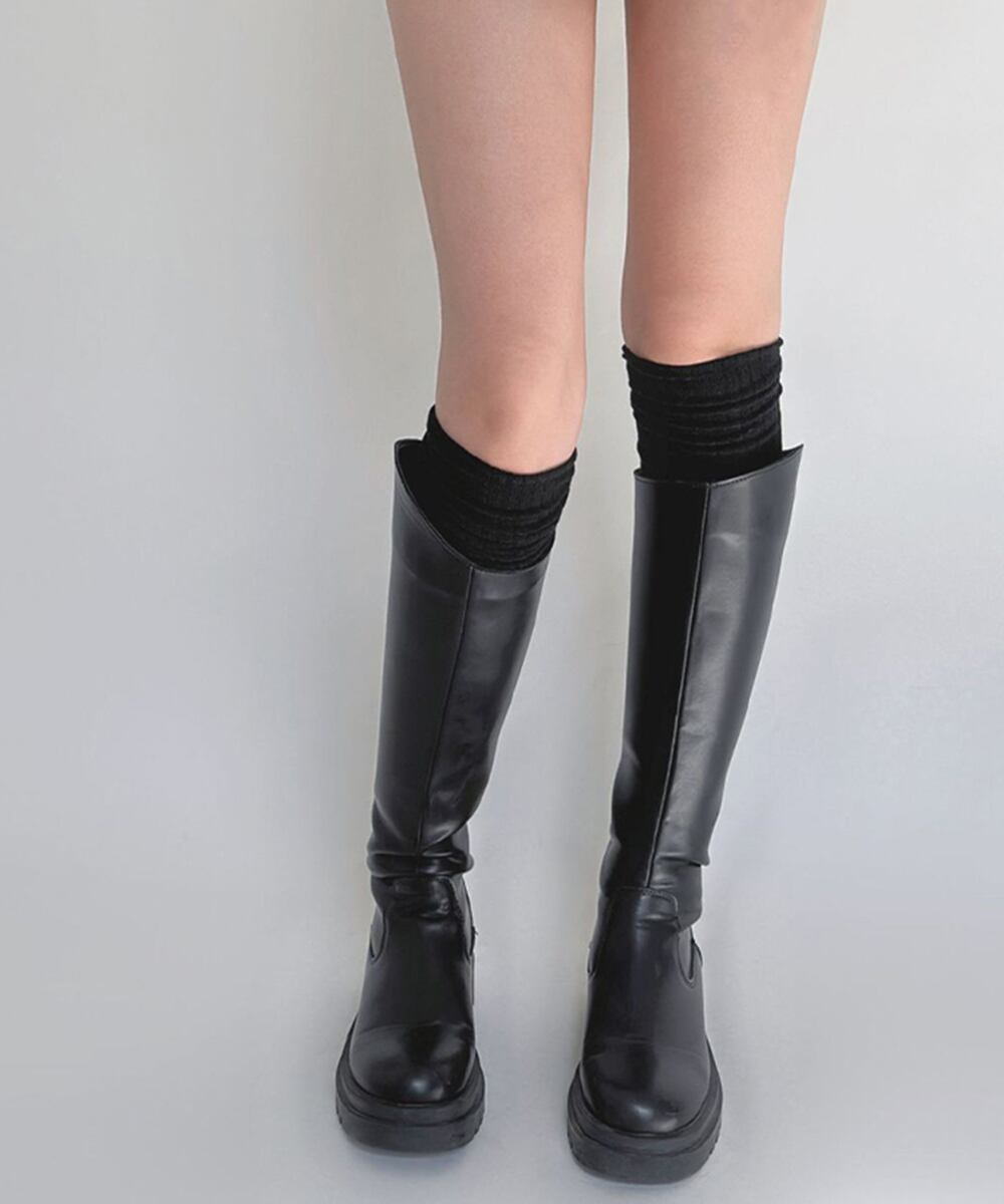 ニーハイソックス 韓国風くしゅくしゅ靴下